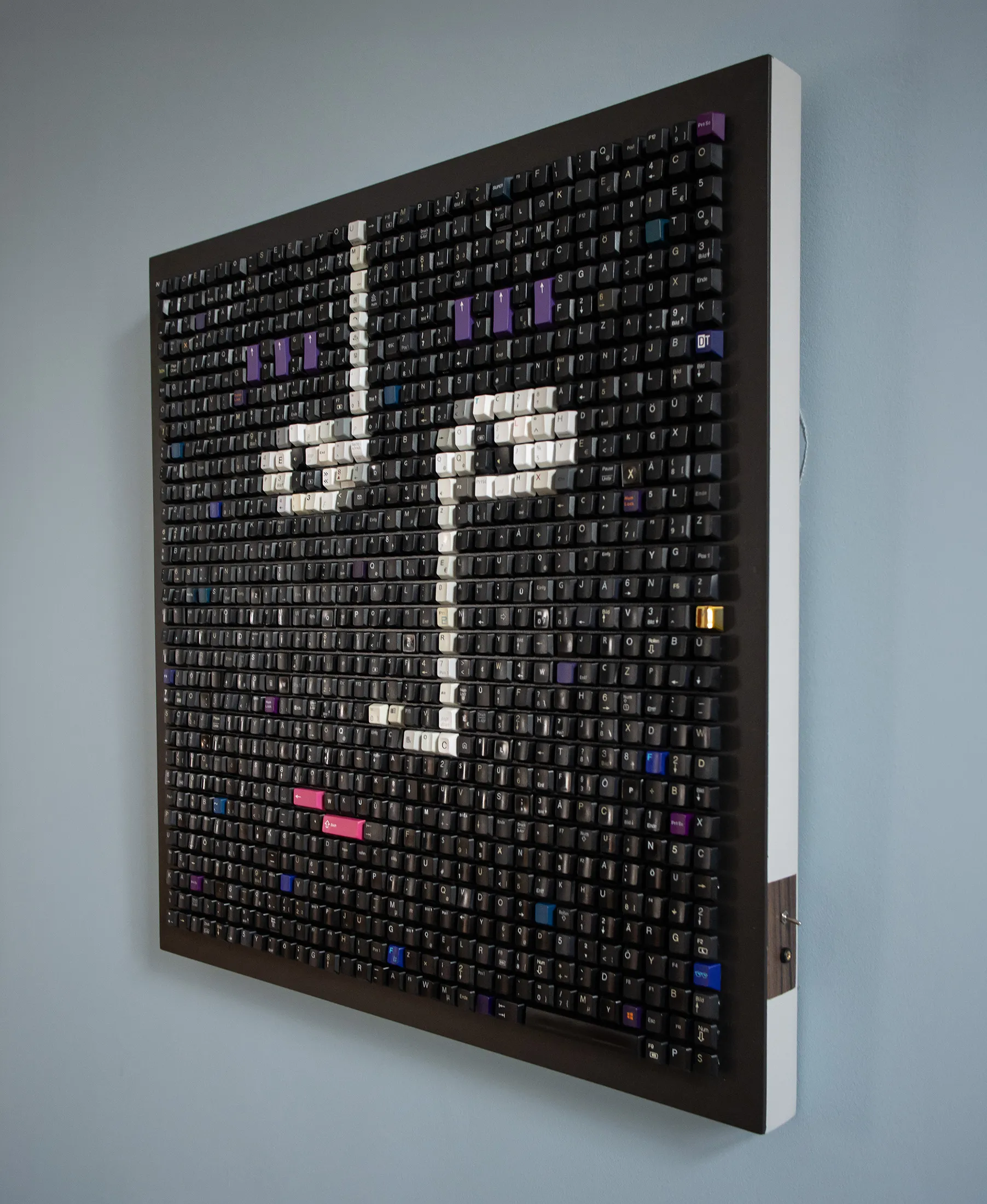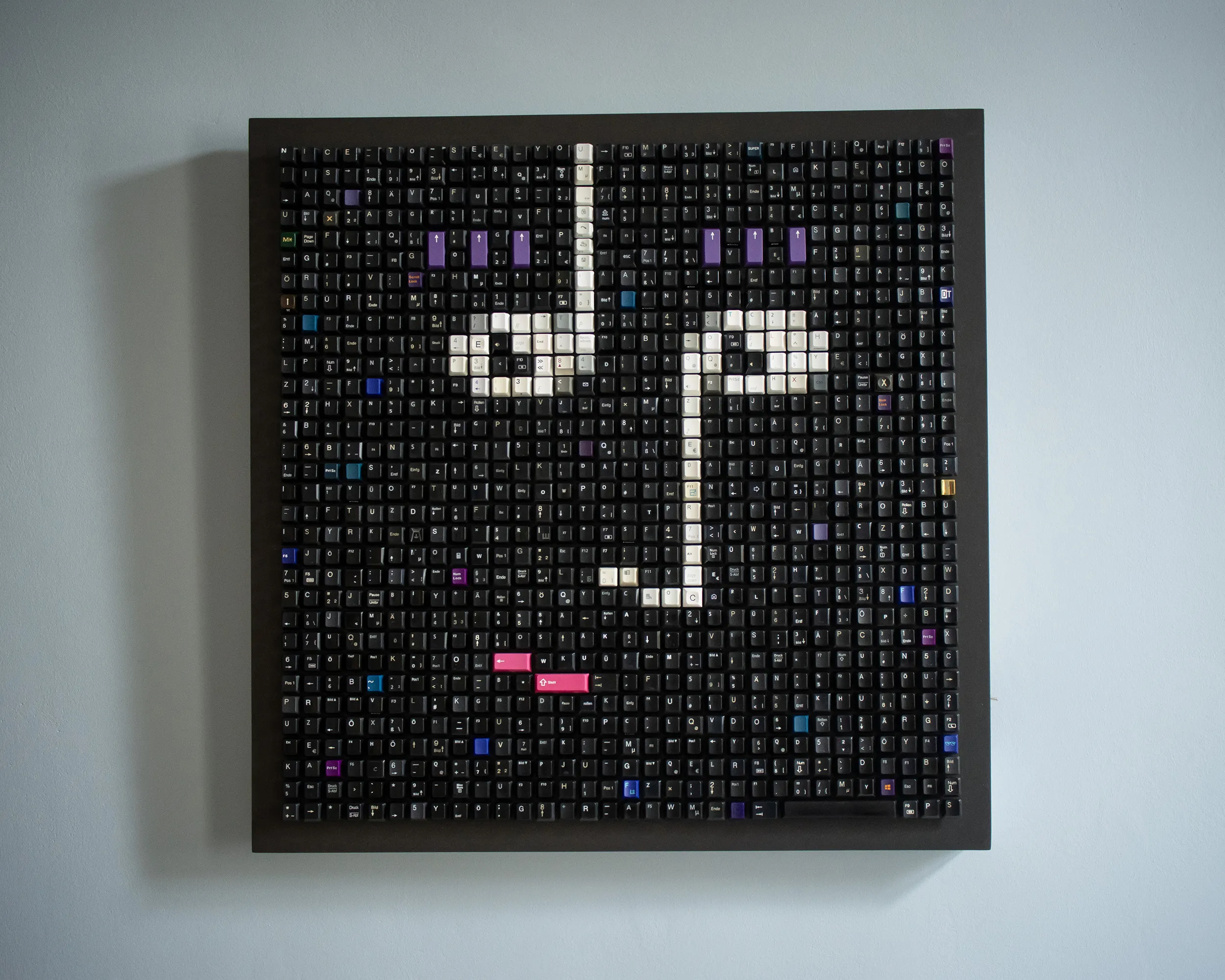 “Nice to See You,” a portrait made of musical notes, is an analog reminder of the digitization of our world. Inspired by Suzan Vega’s “Tom’s Diner” and the birth of the MP3, the work combines sight and sound. Look & Click—with a built-in MP3 player, you can play the very first MP3 file in our world while losing yourself in the keys as you gaze at the image. As we look at the image, the image looks back at us, and we feel addressed—“nice to see you.”